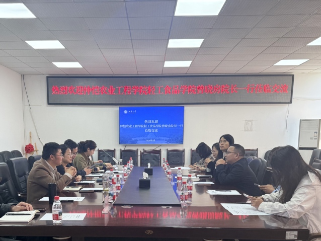 座谈会上,饶瑜院长围绕学院发展历程、学科整体布局、区域产业服务等方面作了全面介绍。她表示,学院始终紧扣国家战略与地方需求,深耕西南食品领域,在人才培养与科学研究中占据重要地位,有力推动了区域经济发展。曾晓房院长对我院的建设成效给予高度评价,并分享了仲恺农业工程学院轻工食品学院的办学经验。她指出,学院聚焦“一枚果、一块肉、一杯酒、一盆菜”的岭南特色研究方向,在服务地方食品产业升级上取得了丰硕成果。