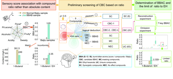 本研究建立的含量比例分析方法将风味互作因素引入统计分析,有效识别潜在焦苦味化合物,将此方法应用于更大样本或荟萃分析,将为数字化勾兑体系构建奠定基础。