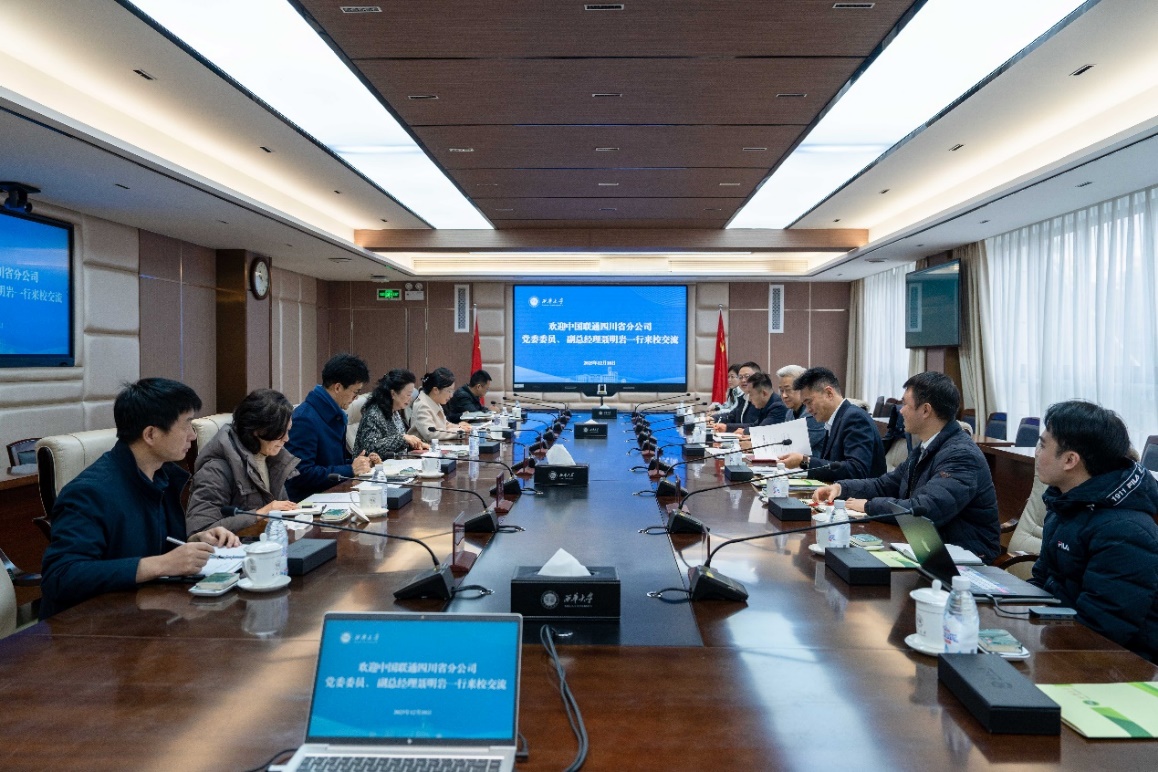 近日,中国联通四川省分公司党委委员、副总经理聂明岩一行来校交流,党委书记靳敏在办公楼212会议室与来宾...