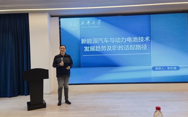 12月11日,2025年四川省技工教育中心教研组“AI赋能专业建设”研修交流活动在成都举行。本次活动由四川省职业培训指导中心主办,四川省技工教育中心教研组交通组、电工电子组联合承办,四川交通技师学院协办,汽车与交通学院教授彭忆强作为特邀专家参加活动,并作“新能源汽车与动力电池技术发展趋势及职教适配路径”专题分享。