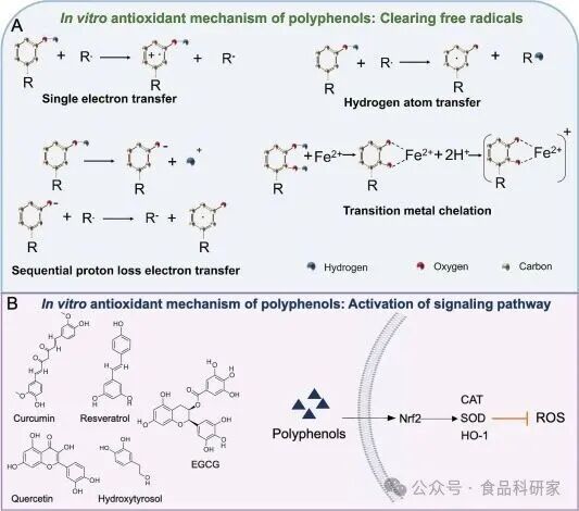 Figure 1 多酚的抗氧化机制(图示多酚体外抗氧化原理:清除自由基的化学过程)