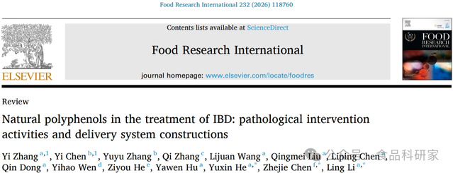 近日,食品与生物工程学院李玲、何宇新教授团队在《Food Research International》发表题为“Natural polyphenols in the treatment of IBD: pathological intervention activities and delivery system constructions”的综述性论文。食品与生物工程学院研究生张宜为论文第一作者,李玲教授及何宇新教授同为本文通讯作者。