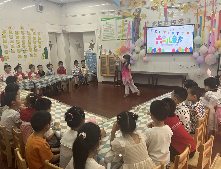 为了让孩子们拥有一个欢乐十足、回味无穷的六一国际儿童节,也为了保障全园师幼的健康与安全,响应政府的防疫号召,5月31日上午,幼儿园以班级为单位开展了庆“六一”活动。