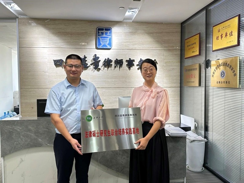 10月15日,法学与社会学学院院长张邦铺、副院长王黎黎一行赴四川蓝贵律师事务所,开展校企合作交流活动,并举行“法律硕士研究生联合培养实践基地”授牌仪式。