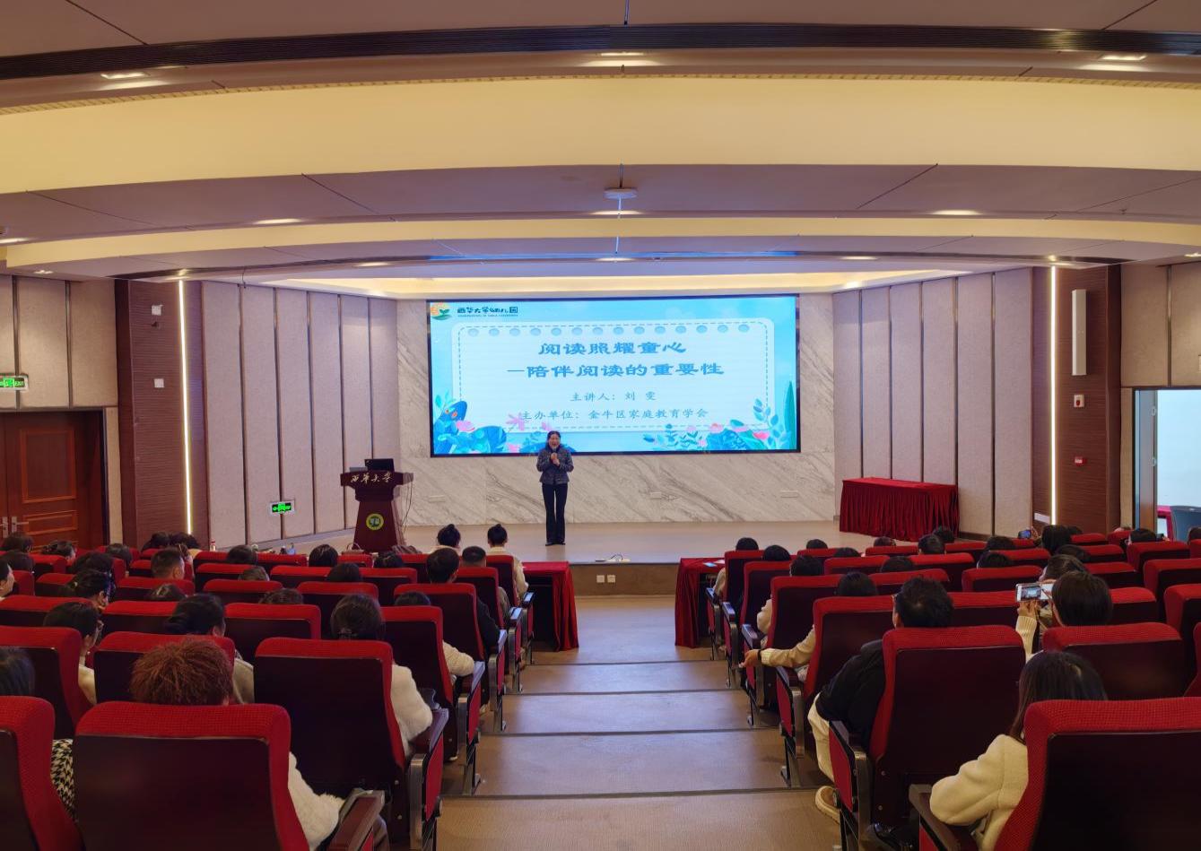 书香润童年,阅读伴成长。阅读是孩子认识世界的窗口,而亲子共读则是父母与孩子心灵对话的桥梁。为帮助家长更好地理解亲子阅读的意义,掌握科学的阅读方法,幼儿园特邀请成都市金牛区家庭教育讲师、成都市锦西幼儿园副园长刘雯为家长们带来《阅读照耀童心,陪伴阅读的重要性》为主题的家庭教育讲座,共同探讨如何让阅读成为孩子成长的温暖力量。