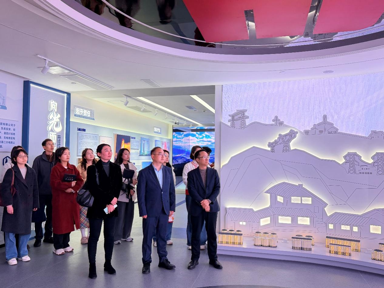 会谈前,老师们前往集团展示大厅,了解四川水电集团的发展历程、电网建设、未来规划等,包括农网改造、完善和升级工程等,以及集团的党建引领群团等情况。