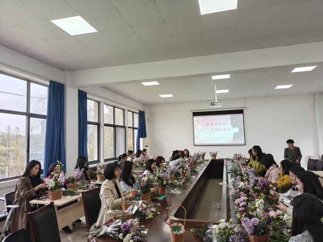 活动现场暖意融融、花香四溢,学院提前筹备了各类鲜切花、园艺工具及装饰物料,营造出温馨雅致的氛围。活动特邀专业园艺师现场授课,细致讲解花卉养护、插花造型等技巧,拆解色彩搭配、枝叶修剪等实操要点。女教职工们凝神聆听、踊跃互动,随后化身“园艺达人”,巧手修剪花枝、精心搭配、细心装点,在动手实践中感受自然之美,沉浸式体验园艺创作的乐趣。