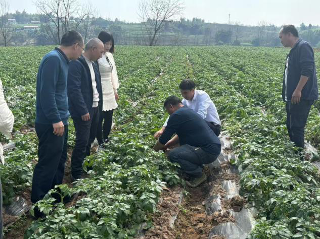 调研团队首站前往富顺县粮蔬现代农业园区,深入田间地头实地查看七彩土豆、辣椒、羊肚菌等特色作物的种植生产情况,详细了解作物的种植规模、生长周期、产量品质等核心信息。在园区内,调研团队与当地种植户代表进行面对面交流,认真倾听种植户在作物培育、田间管理、市场销售等环节遇到的问题与需求,全面掌握特色粮蔬作物从生产端到销售端的全链条发展现状。