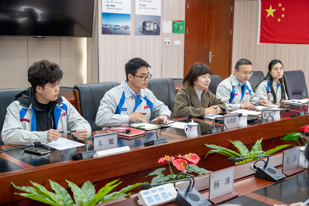 课程交流结束后,在凯翼汽车工作人员引导下,师生一行走进企业展厅与生产制造现场,沉浸式感受中国汽车产业出海的硬核实力。展厅内,讲解员围绕产品研发理念、发展战略及全球市场布局展开详细介绍,从核心技术参数到国际化适配改进,让师生直观领略自主品牌的技术积累与出海底气。