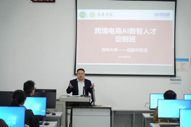 为深化产教融合,推动人才培养与产业需求精准对接,助力学生实现高质量就业,3月30日下午,经济学院举行了“跨境电商AI数智人才”定制班开班仪式。此次“跨境电商AI数智人才”定制班是经济学院与成都中贸通信息科技有限公司通过产教融合,联合培养“跨境电商AI数智人才”。学院副院长姚世斌、商务管理系主任刘俊、副主任何春燕,成都中贸通信息科技有限公司相关负责人及师生代表参加了活动,商务管理系副主任何春燕主持仪式。