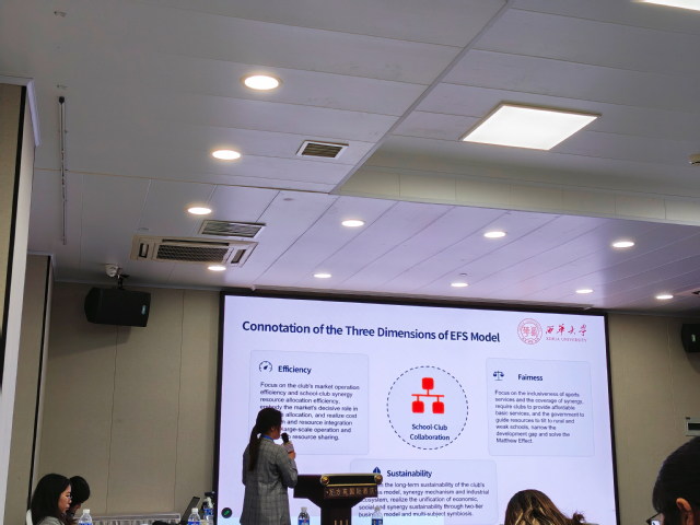 在汇报中,孔珏华指出,单纯依靠市场机制难以解决当前青少年体育俱乐部面临的资源配置不均问题,需要政府“有形之手”进行精准干预,通过校社协同构建可持续发展的健康生态。这一研究成果体现了体育专业学生跳出“单一技能”束缚,向“复合型、研究型”人才迈进的潜力。