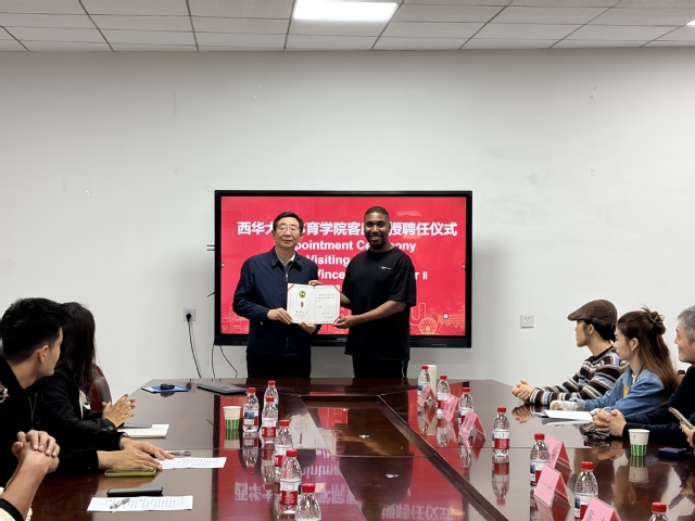 4月2日下午,体育学院在4C205会议室隆重举行客座教授聘任仪式,聘任国际知名舞蹈艺术家Jerome Vincent Alexander II为学院客座教授。体育学院党委书记邱刚、副院长何盛、党政办主任魏崧丞、体育表演系全体教师及学院相关师生代表参加了聘任仪式。仪式由体育表演系副主任陈鸥主持。