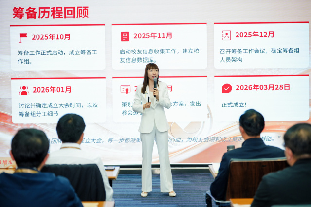 秘书长邓亚兰作工作规划发言,回顾了筹备组前期工作,并现场播放企业走访活动视频,展现了筹备工作的扎实高效。她结合当前就业形势,呼吁广大校友积极为学弟学妹提供就业机会与发展平台,凝聚力量共促成长。