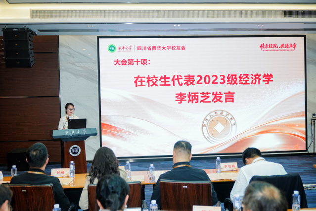 校友代表颜钢在发言中强调,校友会是联结情感的重要纽带,更是助力学弟学妹成长、传承母校精神的关键平台,呼吁广大校友主动参与、热情支持,共同建设有温度、有归属感的精神家园。在校生代表、2023级经济学专业李炳芝表示,将珍惜校友资源,传承榜样力量,常怀感恩之心。