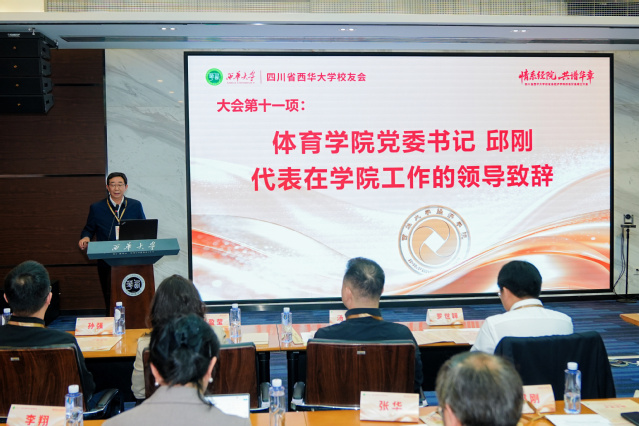 体育学院党委书记邱刚作为曾在经济学院工作的领导代表致辞。他指出,经济学院校友会的成立是学院发展的重要里程碑,并就未来发展提出三点希望:坚守初心、勇担社会责任;开放合作、协同共赢;常回母校、助力学院建设。他期待校友资源持续转化为推动学科建设和办学质量提升的实际动力。