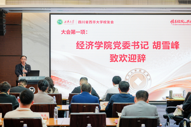 大会在庄重热烈的氛围中拉开帷幕。经济学院党委书记胡雪峰致欢迎辞,代表学院全体师生向各位校友致以诚挚问候。他指出,校友工作是学院发展的重要支撑,校友平台既是联结情感的纽带,也是整合资源的桥梁。广大校友通过参与人才培养、学科建设等方式积极回馈母校,为学院发展注入了持续动力。