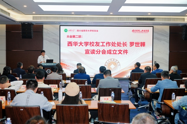 西华大学校友工作处处长罗世驊宣读分会成立文件