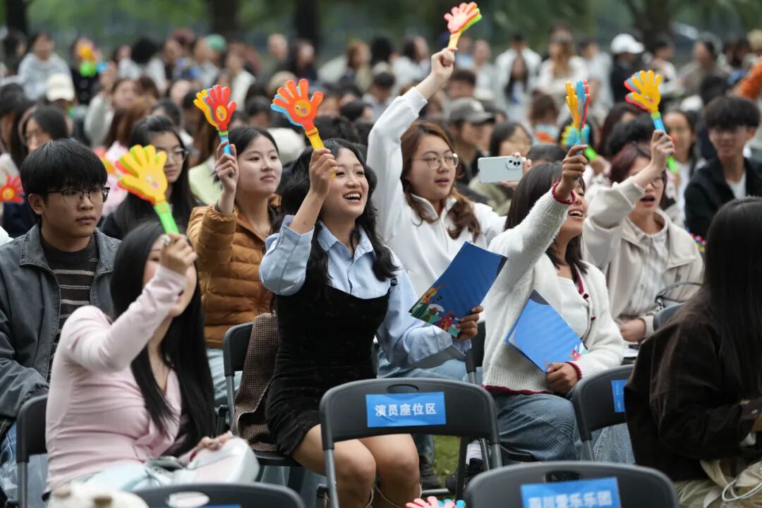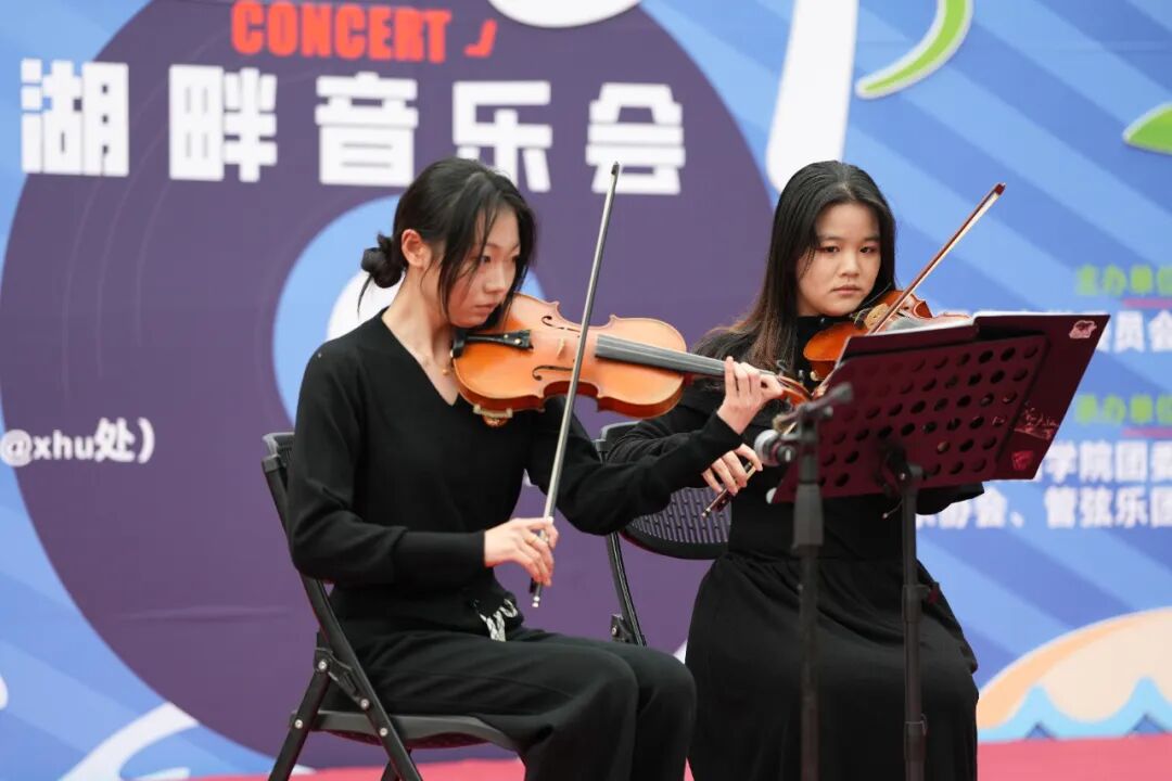 随后,音乐与舞蹈学院教师、音乐协会和校园歌手用音乐之声点燃现场氛围。葫芦丝独奏《月光下的凤尾竹》展现了中华传统民乐的清雅意境,二胡独奏《战马奔腾》令观众仿佛置身辽阔草原,《逆战》与《山海》等曲目激荡出青年人不畏挑战、勇毅前行的热血与豪情。最后,全场合唱《改变自己》,唱响了青年学子向阳而生、逐梦前行的青春乐章。活动期间还设置了“听曲猜歌”互动环节,熟悉的旋律接连响起,同学们踊跃抢答、欢声笑语不断,让湖畔成为充满活力与温情的艺术乐园。