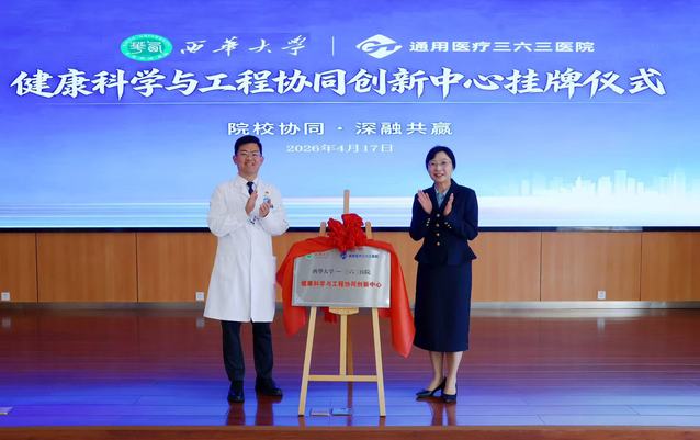 4月17日,西华大学—三六三医院健康科学与工程协同创新中心挂牌仪式在三六三医院犀浦院区行政楼4楼多功能厅举行。西华大学党委常委、副校长山述兰,三六三医院党委副书记、院长李满出席仪式并致辞。